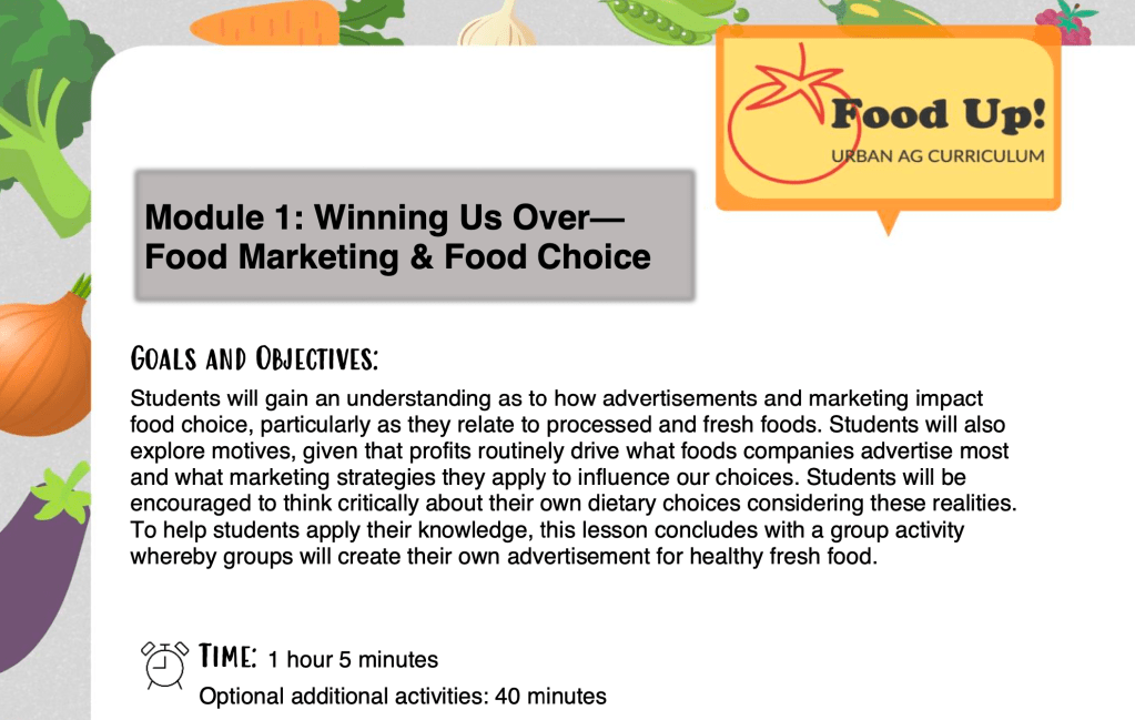- Module 0: How to use the Food Up! curriculum—tips, tricks, and background