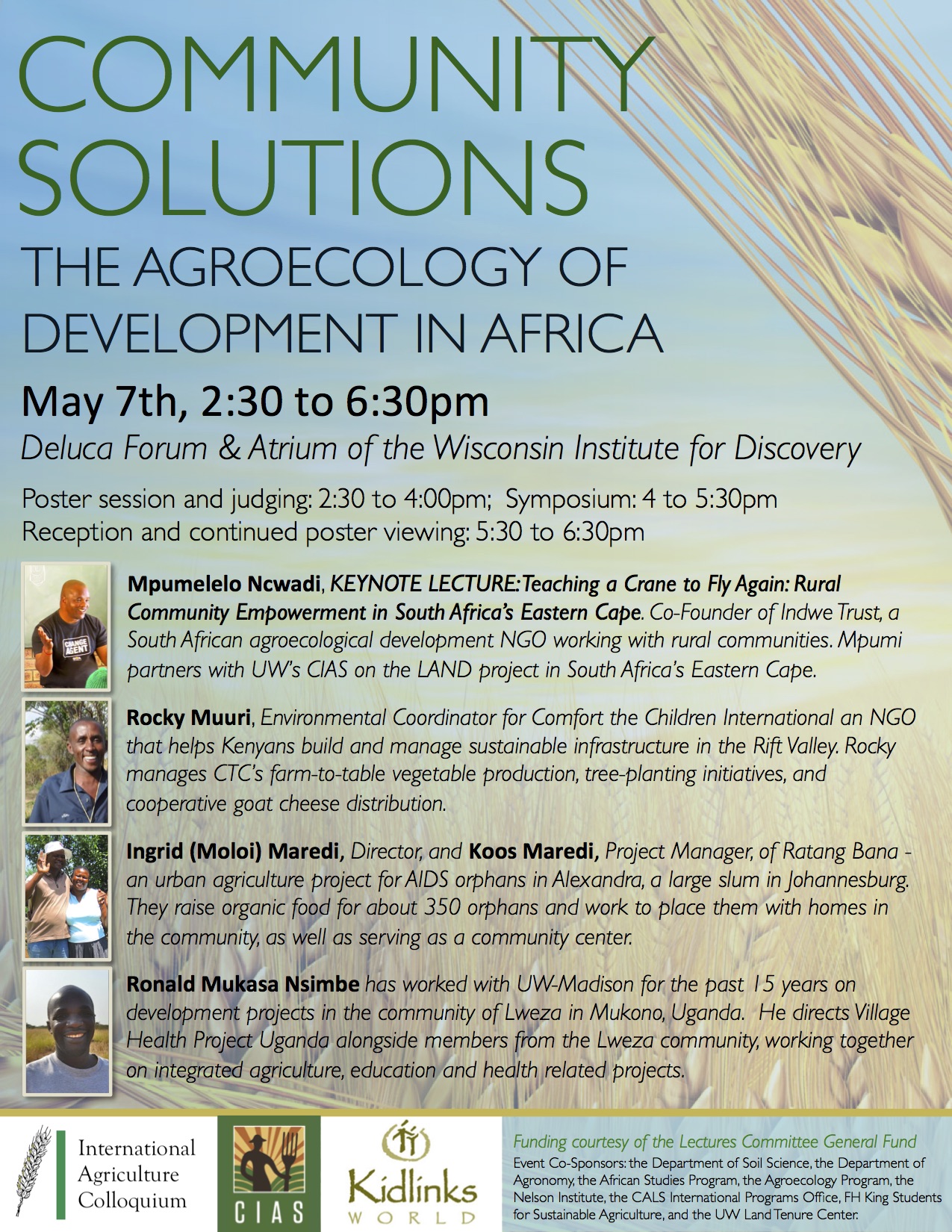In the spring of 2015, CIAS partnered with Kidlinks World and the International Agriculture Colloquium, a student group on the UW Madison campus, to offer a unique symposium: Community Solutions: The Agroecology of Development in Africa at the Deluca Forum in the Wisconsin Institute for Discovery (WID) building.