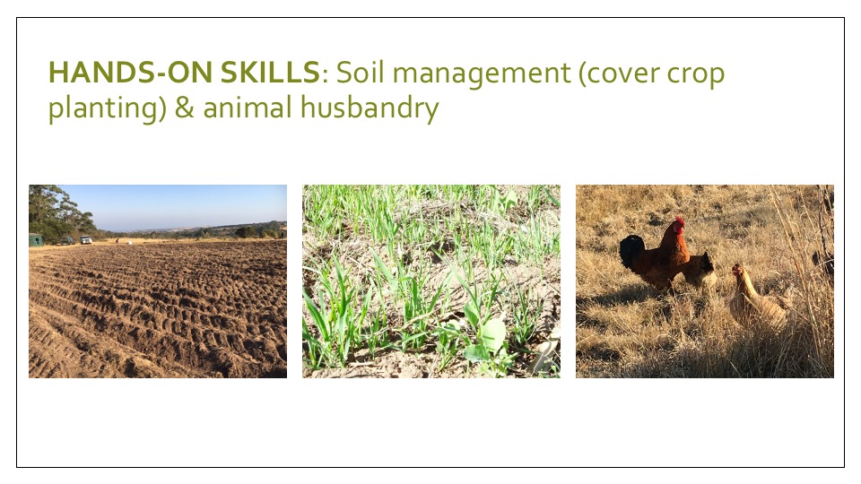 The promotion of agroecological farming methods for young emerging farmers to boost employment, enhance food security and to combat climate change. Students are to evaluate and report on different teaching methods utilized in training future farmers.